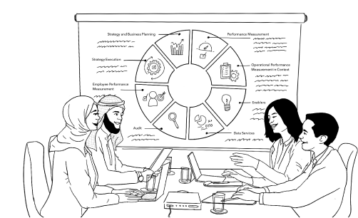 We are committed to strengthening your competitive edge, addressing challenges related to cost, innovation, and sustainability. Our integrated solutions follow an innovative 8-helix approach, grouping services under strategic practice domains. These include Strategy and Business Planning, Performance Measurement, Strategy Execution, Operational Performance Management in Context, Employee Performance Management, Audit, Enablers, and Data Services.