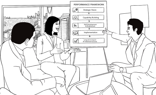 Our impact on organizations is strategically designed to foster processes and competencies guided by a long-term, transformational philosophy. We reinforce your organizational capabilities by deploying a comprehensive performance framework while equipping you with the necessary skills to implement it successfully.